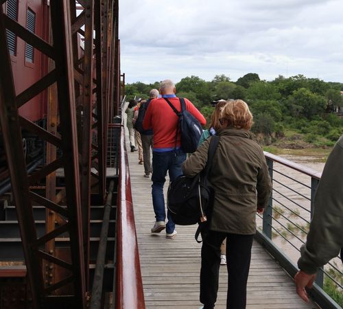 Because this is the Kruger in full voice. The river runs strong, the bush is vibrant, wildlife is abundant, and from the train on the bridge, guests are granted a rare privilege to witness it all, held gently above the flow.