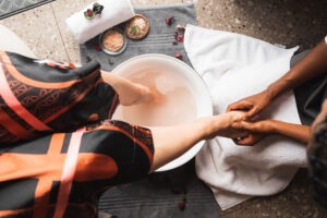 The age-old tradition of pressure point stimulation on the feet. The feet are divided into zones that represent the whole body. The massage of the nerve endings situated at the bottom of the feet triggers off a response in the body. Thorough stimulation